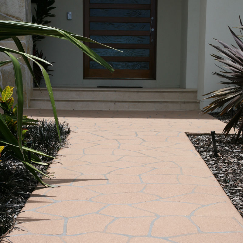 Decorative styles and themes are endless with the use of patterns, textures and colours. Any design is possible and can be coordinated with your ideas and surroundings which definitely compliments the appearance and adds value to your property. Overcrete is suitable for application on concrete driveways, pathways, patios, stairs and pool and barbeque surrounds.